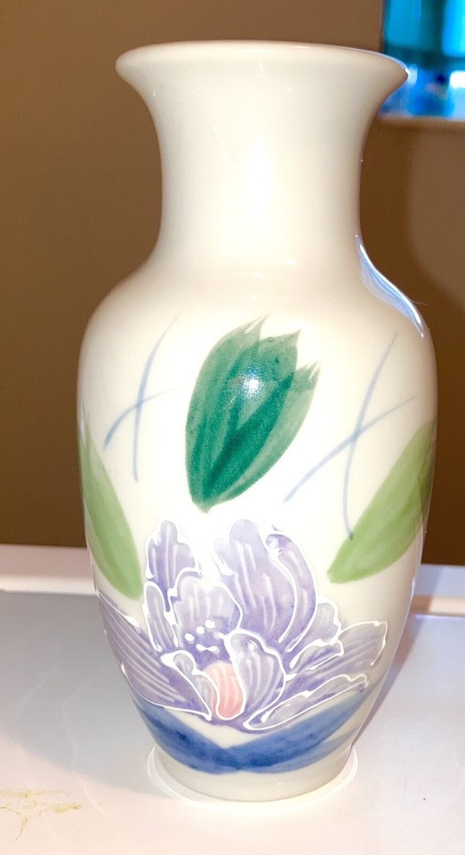- Vase Porcelain Orchid and water lily Art Hand Painted circa 1965 Japan Vintage