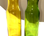 Green and Yellow Glass Vases for flowers or candles 8 Inches Tall set of 2