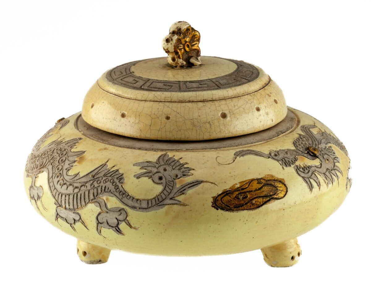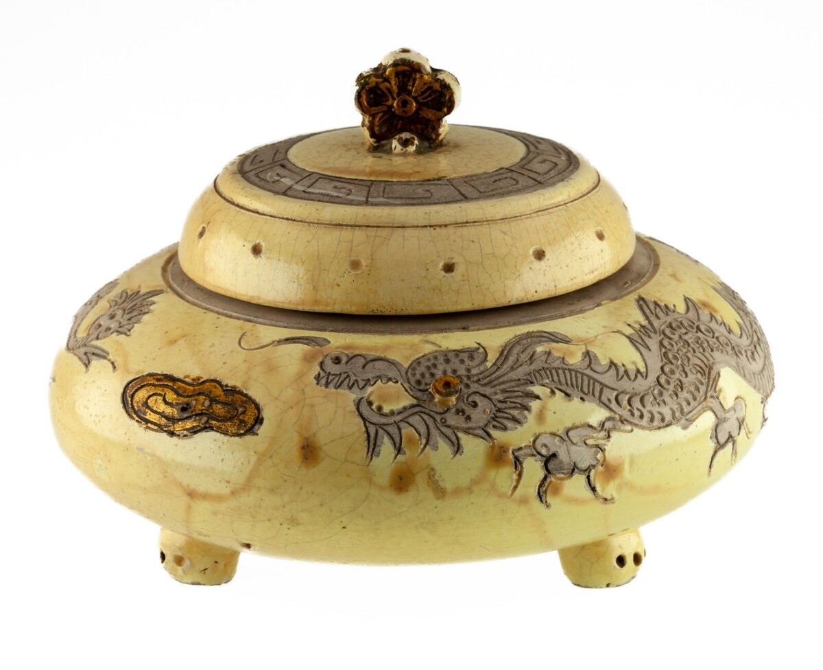 Viaje glaseado de ceramica chino antiguo con detalles del dragon