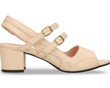 - Vegane Sandalen Damen Peeptoe Slingback Beige Apple Skin Schnallen Knöchelriemen