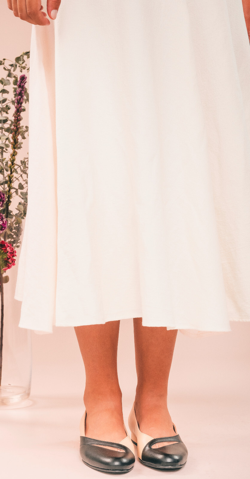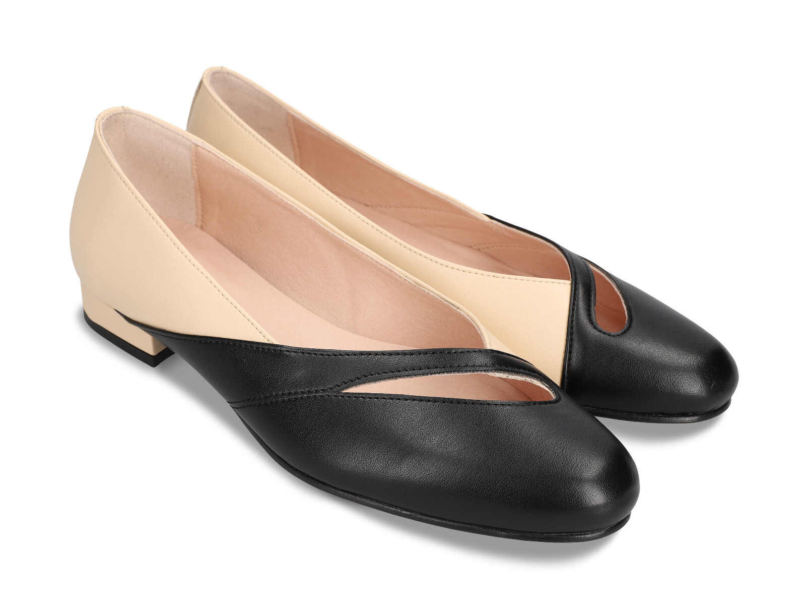 - Vegane flache Damenschuhe Ballerina zweifarbig schwarz beige aus Apfelhaut Flats