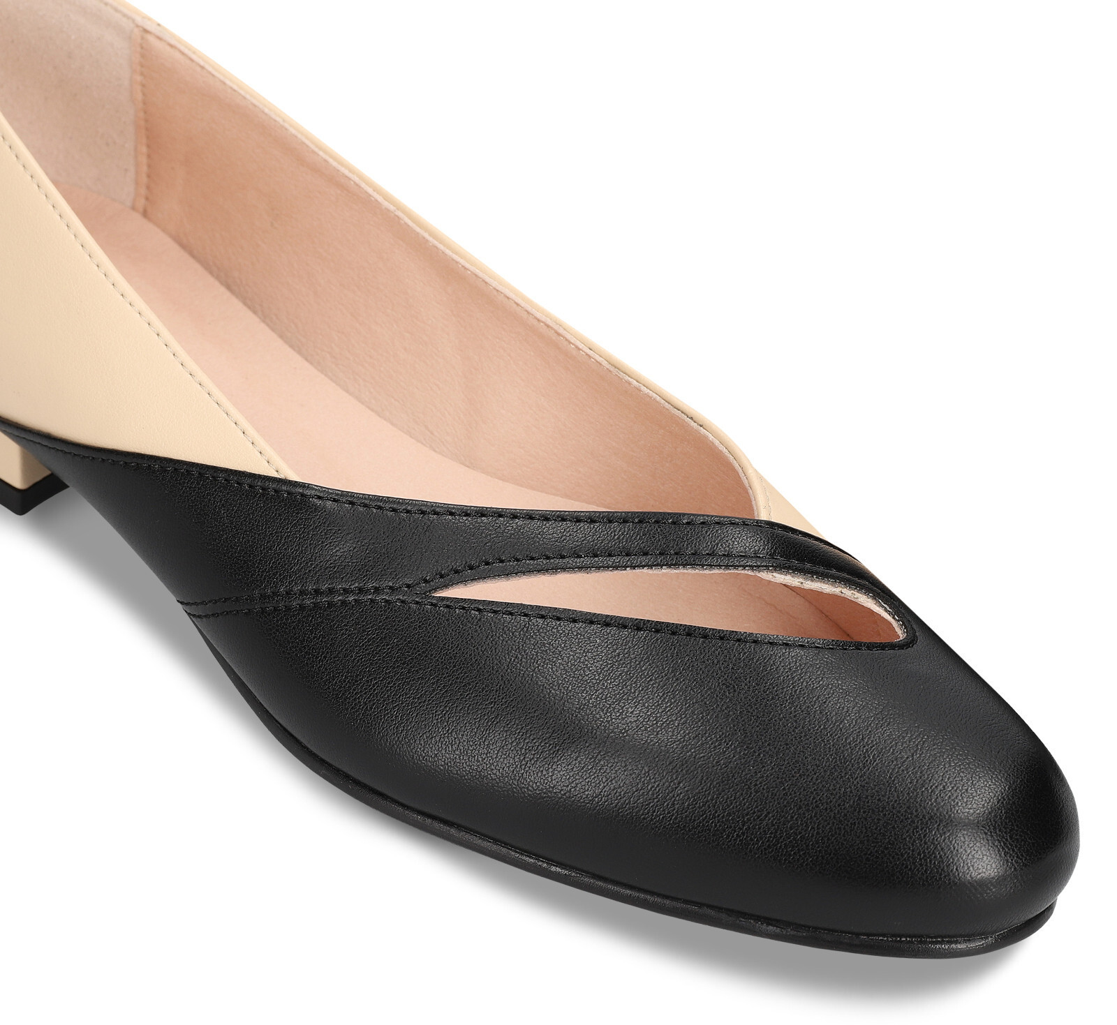 Vegane flache Damenschuhe Ballerina zweifarbig schwarz beige aus Apfelhaut Flats