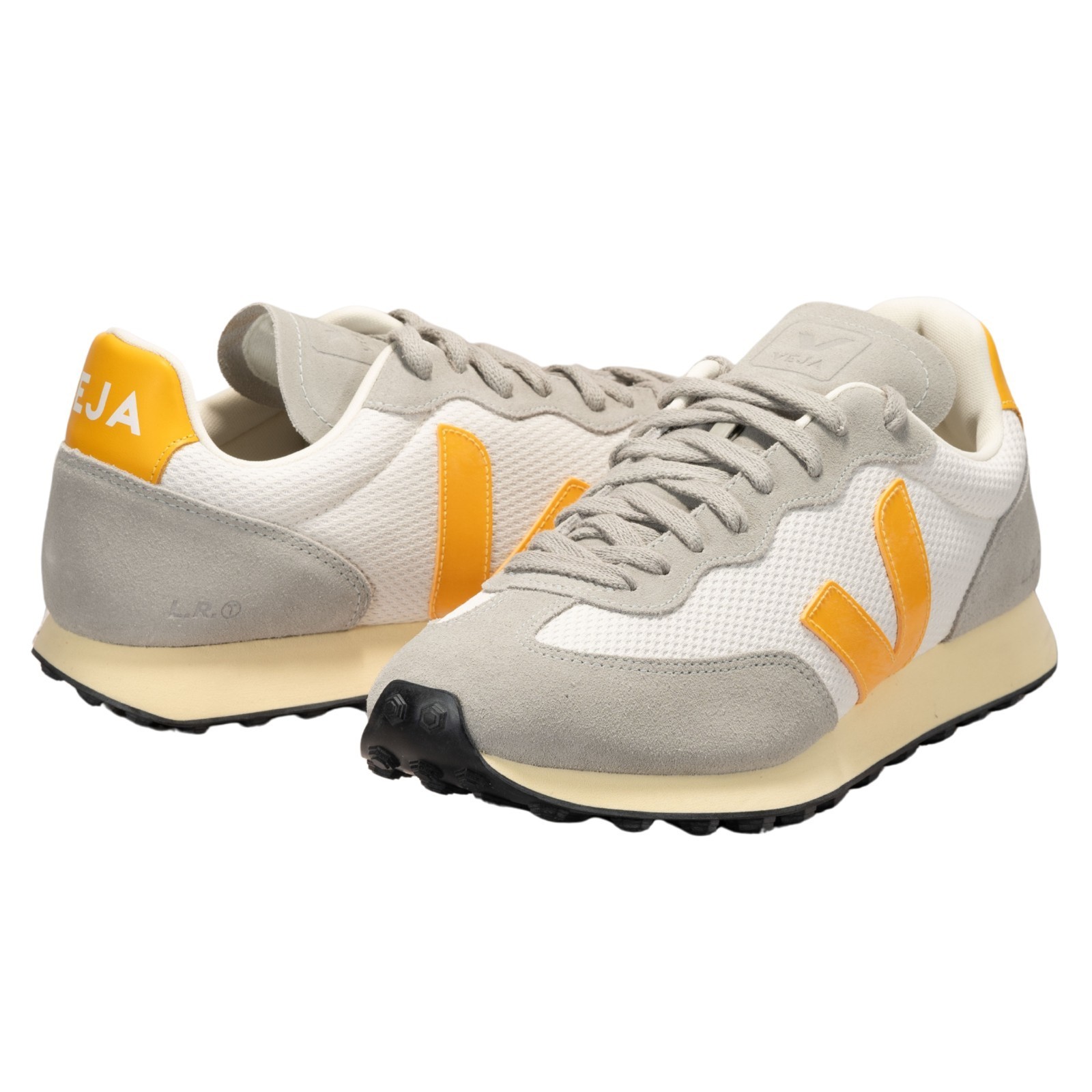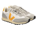 The Veja Men's Rio Branco Alveomesh Sneakers in Gravel/Ouro, Grey, Size 10 Medium US are a stylish and comfortable choice for casual wear. Made with a mesh and suede upper, these sneakers feature a lace-up closure and a low-top shoe shaft style. The rubber outsole provides durability and traction, while the foam insole ensures a comfortable fit. Perfect for all seasons, these sneakers are designed for walking, running, and jogging activities. With a modern design and outdoor theme, these Veja sneakers are a trendy addition to any man's wardrobe.