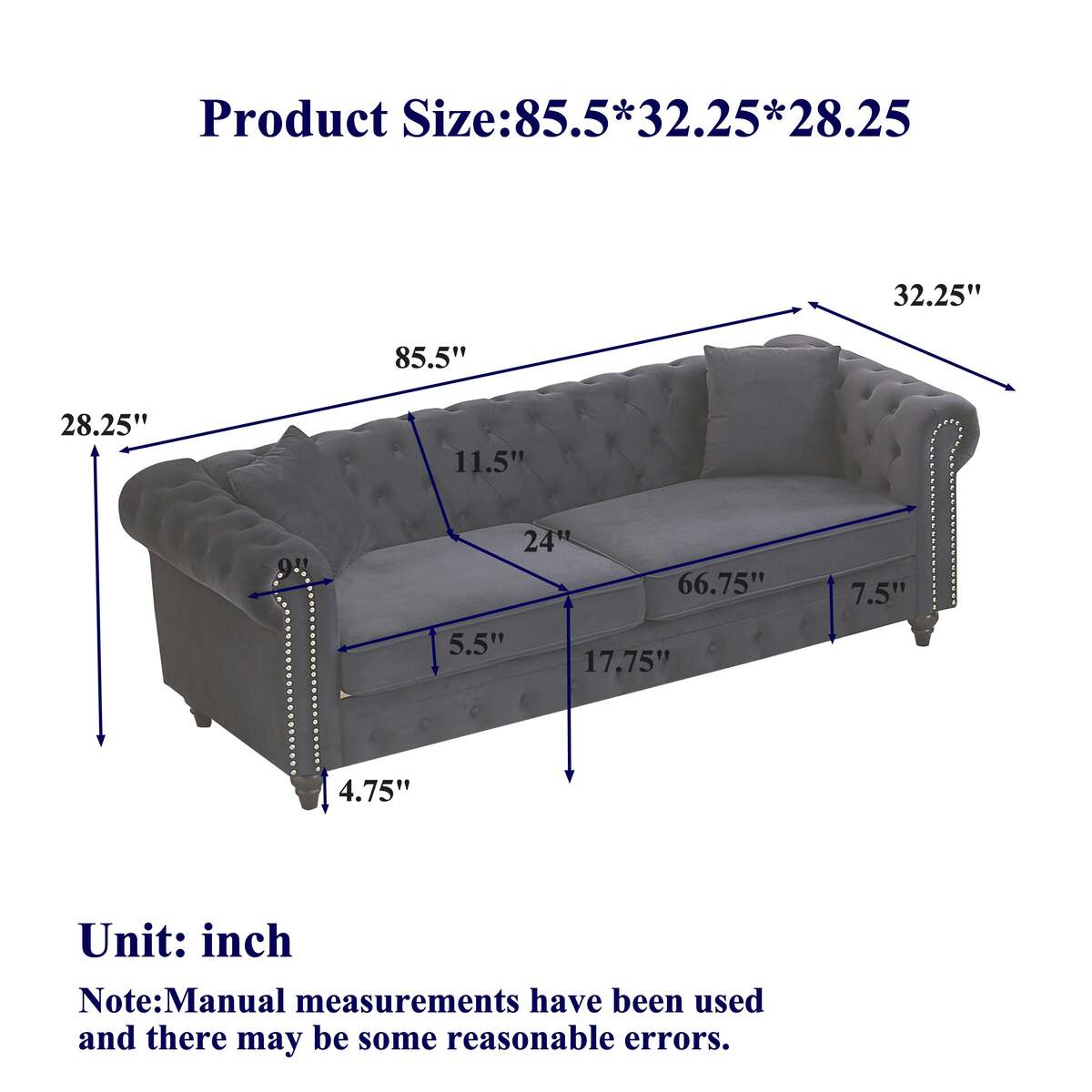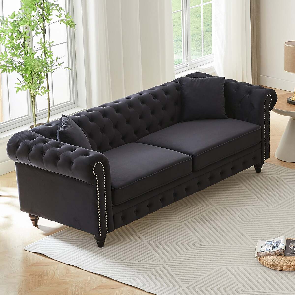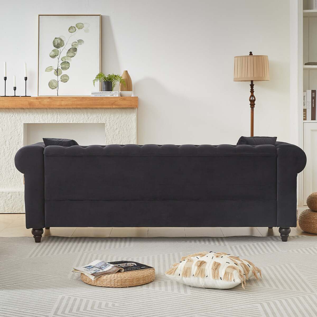- Velvet Chesterfield Sofa 3 Seater with Rolled Arms for Living Room