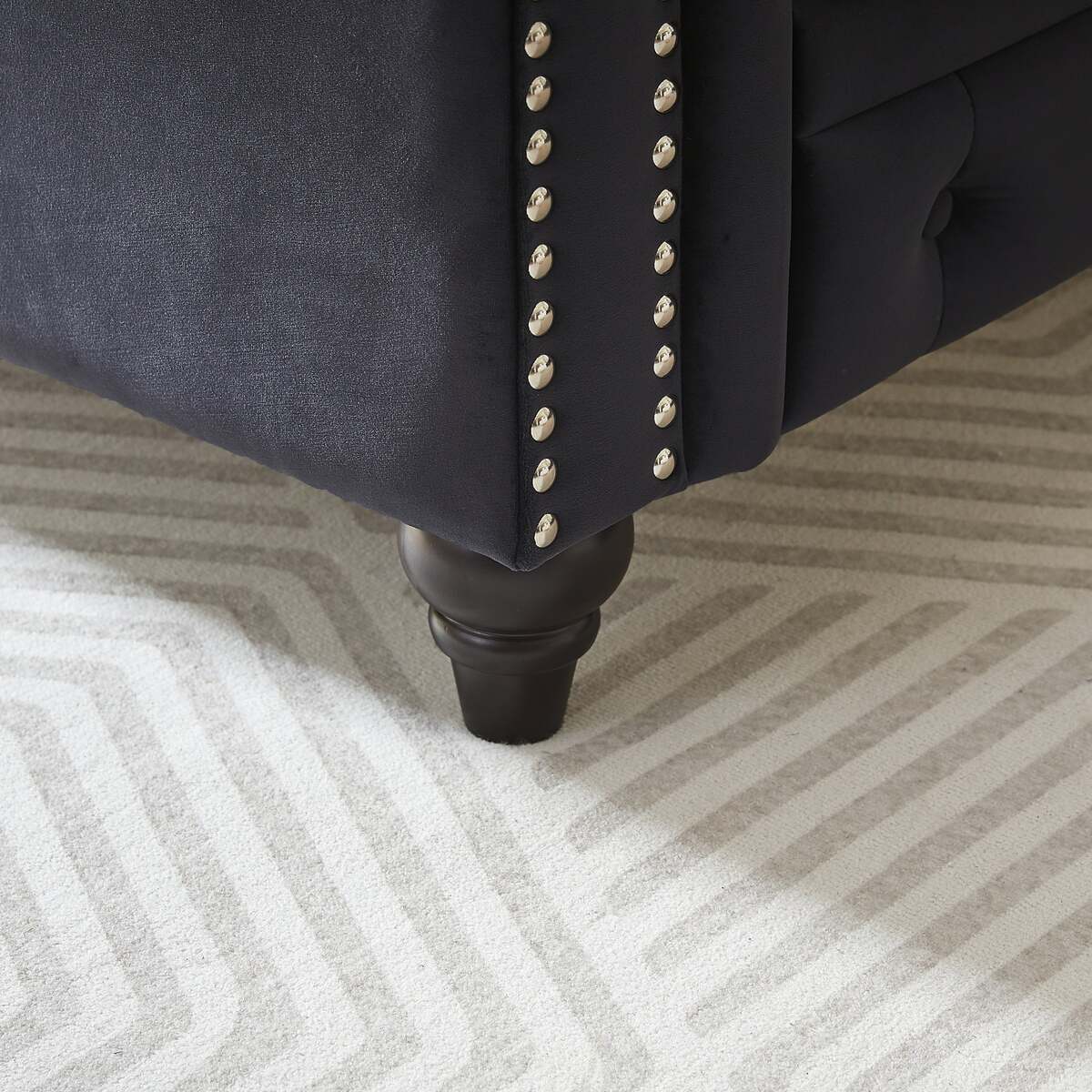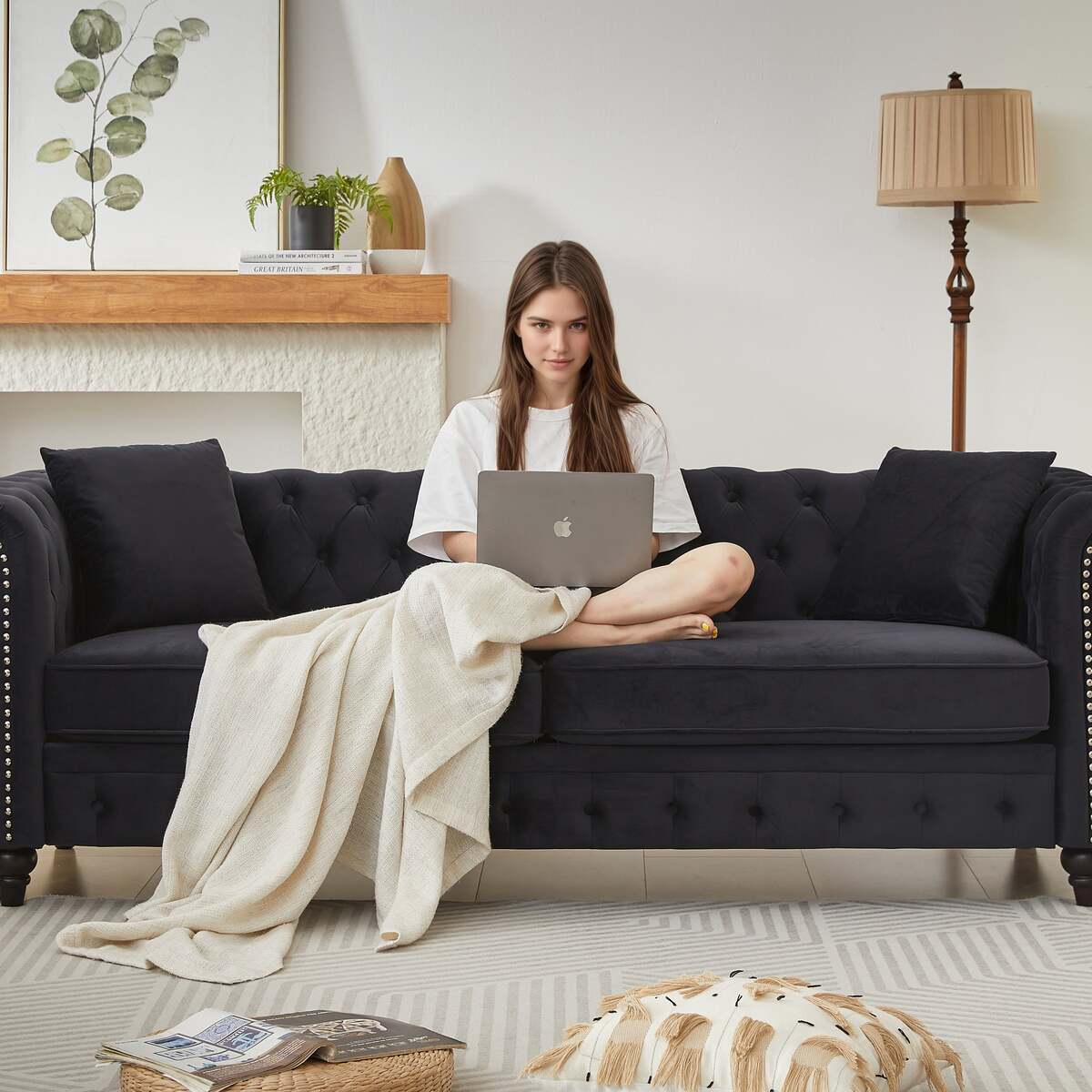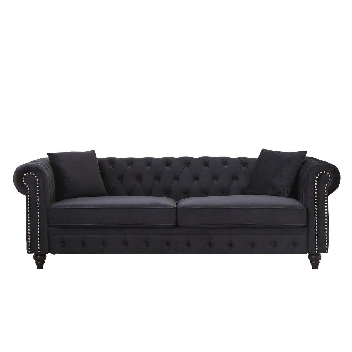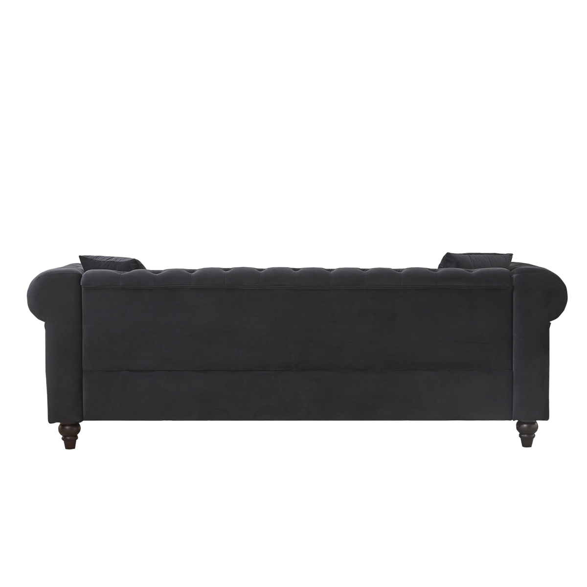 - Velvet Chesterfield Sofa 3 Seater with Rolled Arms for Living Room