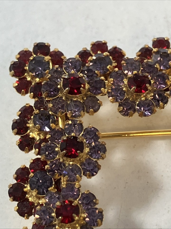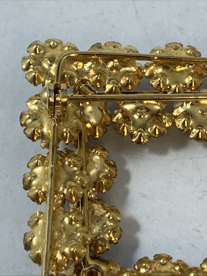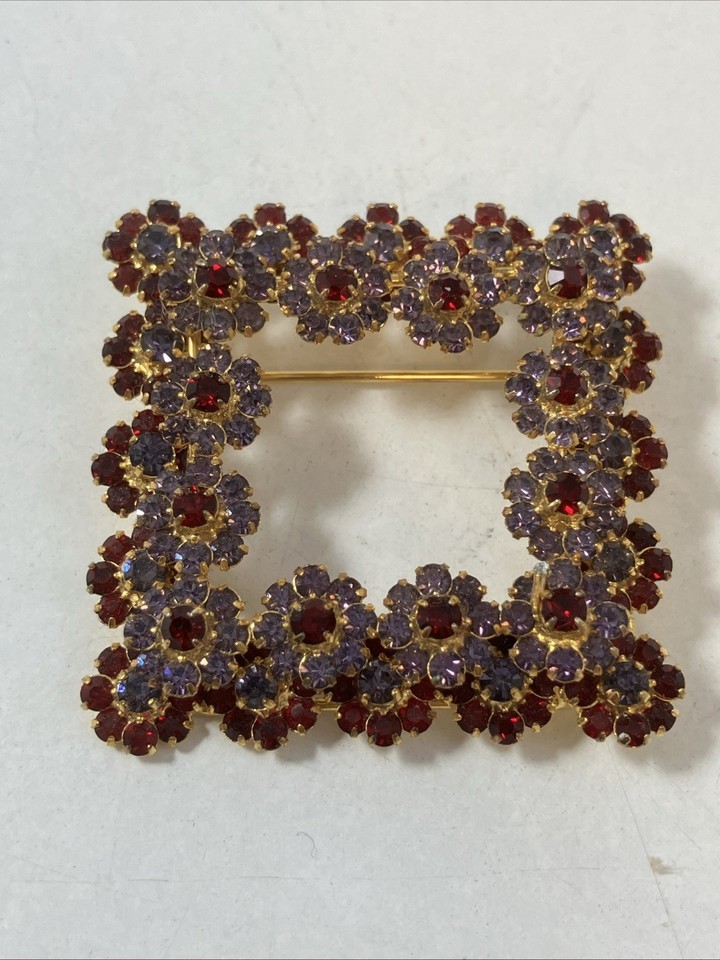 - Vendome? Signed Red Amethyst Rhinestone Square Gold Tone 1.5”X1.5” Brooch Pin
