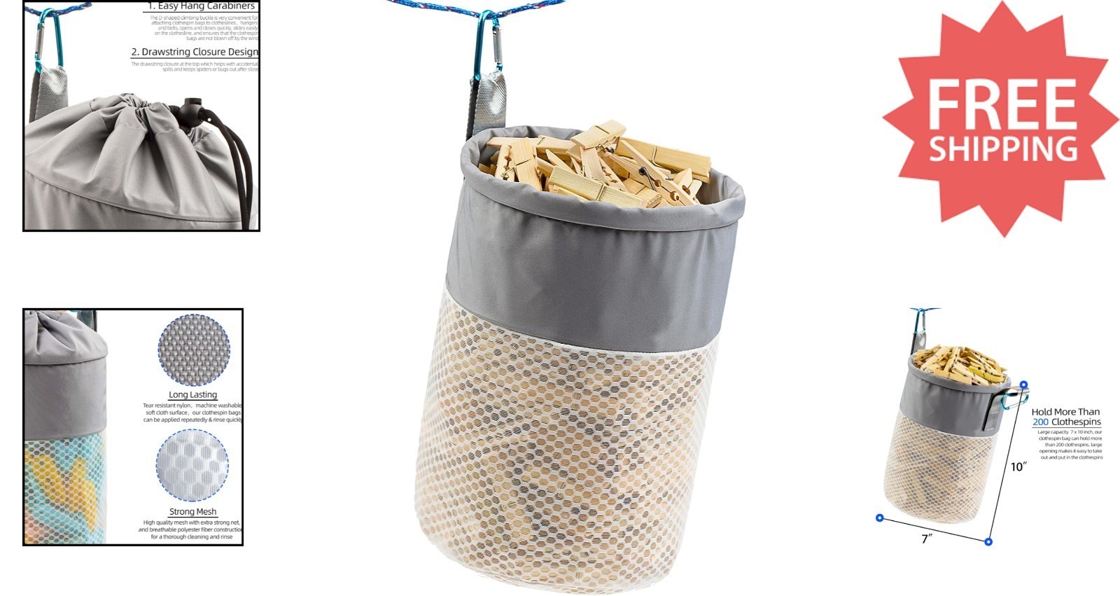 This versatile clothespin bag features multiple hanging options with secure D-rings and a magic clasp for easy sliding on clotheslines. Measuring 7 x 10 inches, it comfortably holds over 200 small clothespins with a large opening for quick access. Crafted from durable, lightweight mesh, it ensures breathability and quick drying, withstanding repeated use. The drawstring top prevents spills and keeps out bugs, offering added security. Ideal for both indoor and outdoor use, it also stores socks, toys, and other small items to declutter your space. To ensure fast and reliable delivery, we work with multiple fulfillment partners and suppliers. Depending on availability and location, your order may ship from different warehouses or arrive in packaging that varies from item to item. Tracking details are typically provided shortly after shipment, and customer satisfaction remains our top priority. Please note that due to carrier policies and regional regulations, certain items may not be eligible for delivery to specific states or territories.
