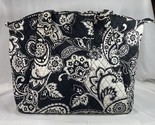 Vera Bradley Bag Black White Floral Pattern 19”X 13.5” Seven Pockets Inside Bag