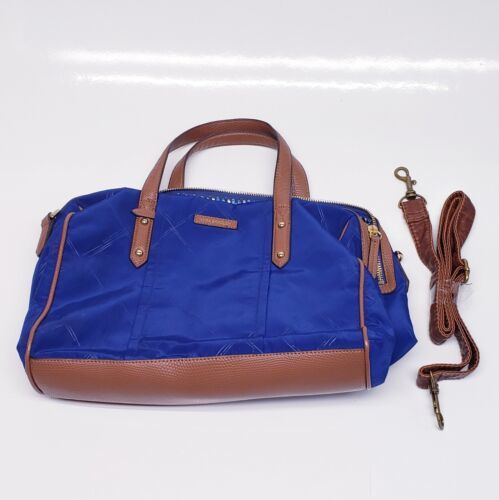 Vera Bradley Blue Preppy Poly Triple Travel Bag Claret Blue Brown Purse