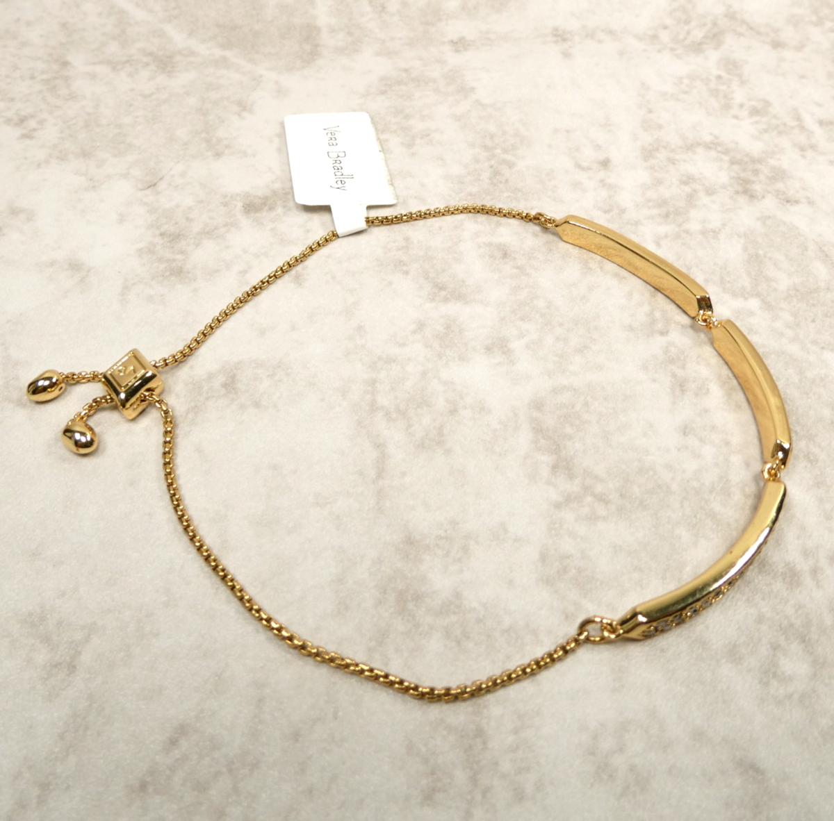 Vera Bradley Gold-Toned Metal Black Crystal Adjustable Bracelet - NEW