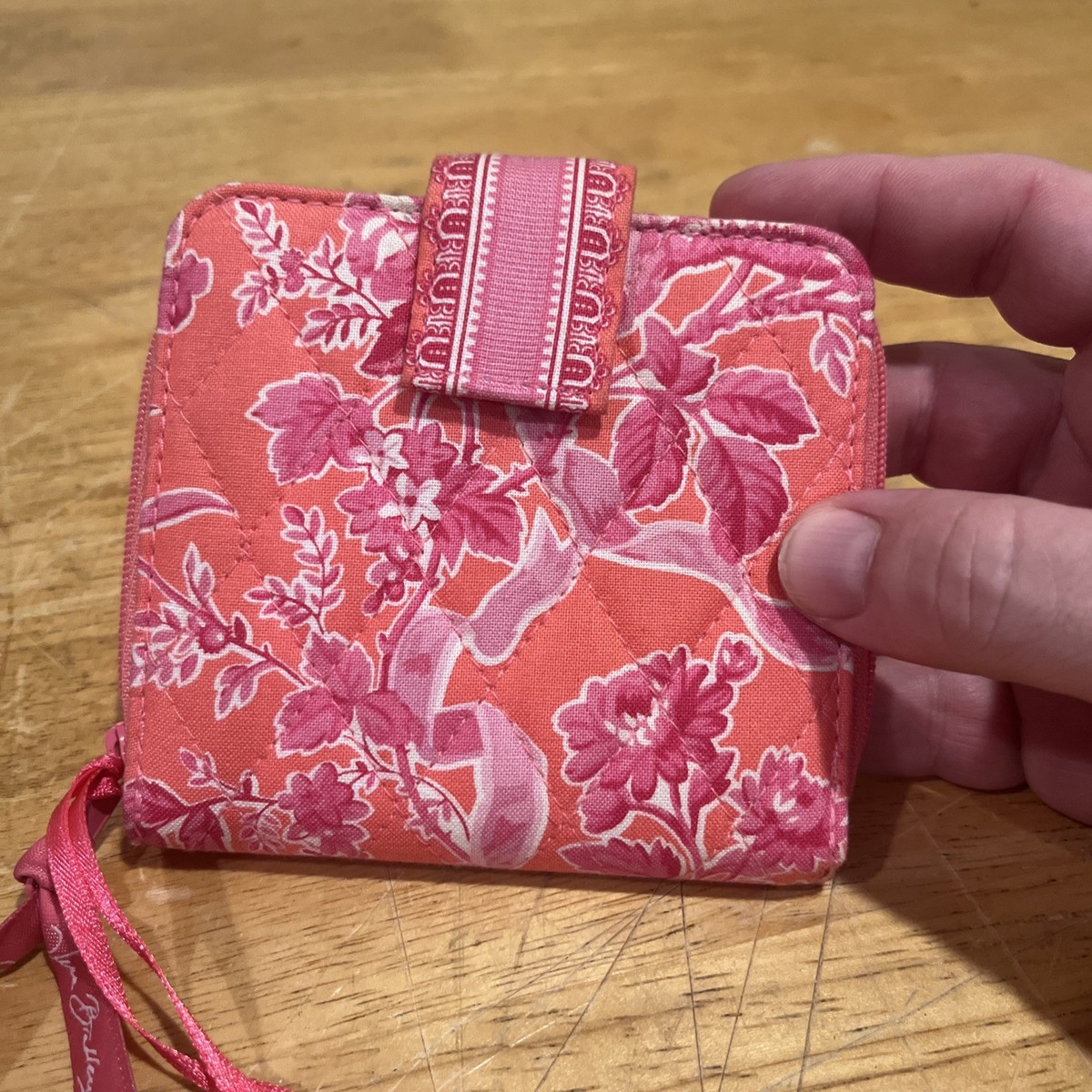 - Vera Bradley Hope Toile Pocket Wallet Travel Size Pink Mini Cloth Zip Around