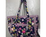 Vera Bradley Ribbons Of Hope Navy Blue XL Tote Floral Butterfly Quilted Outdoor