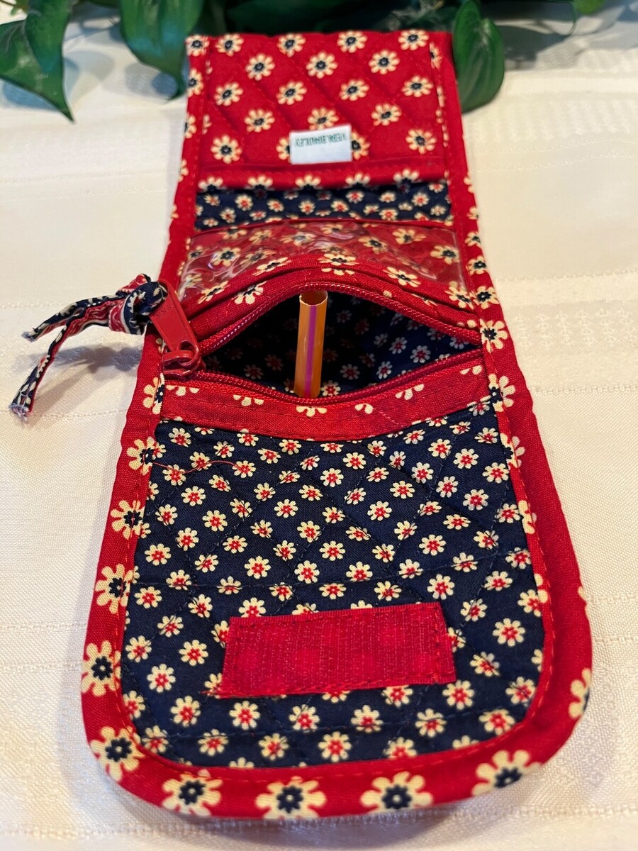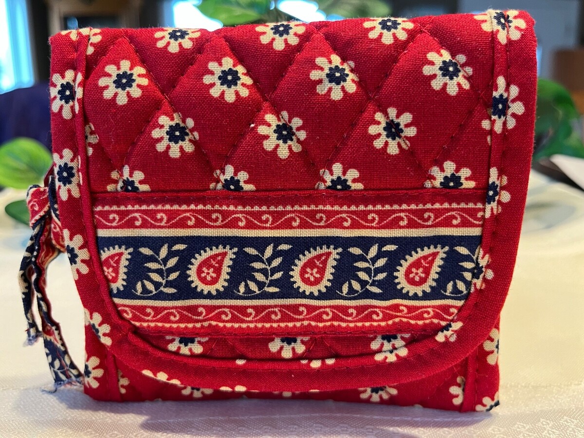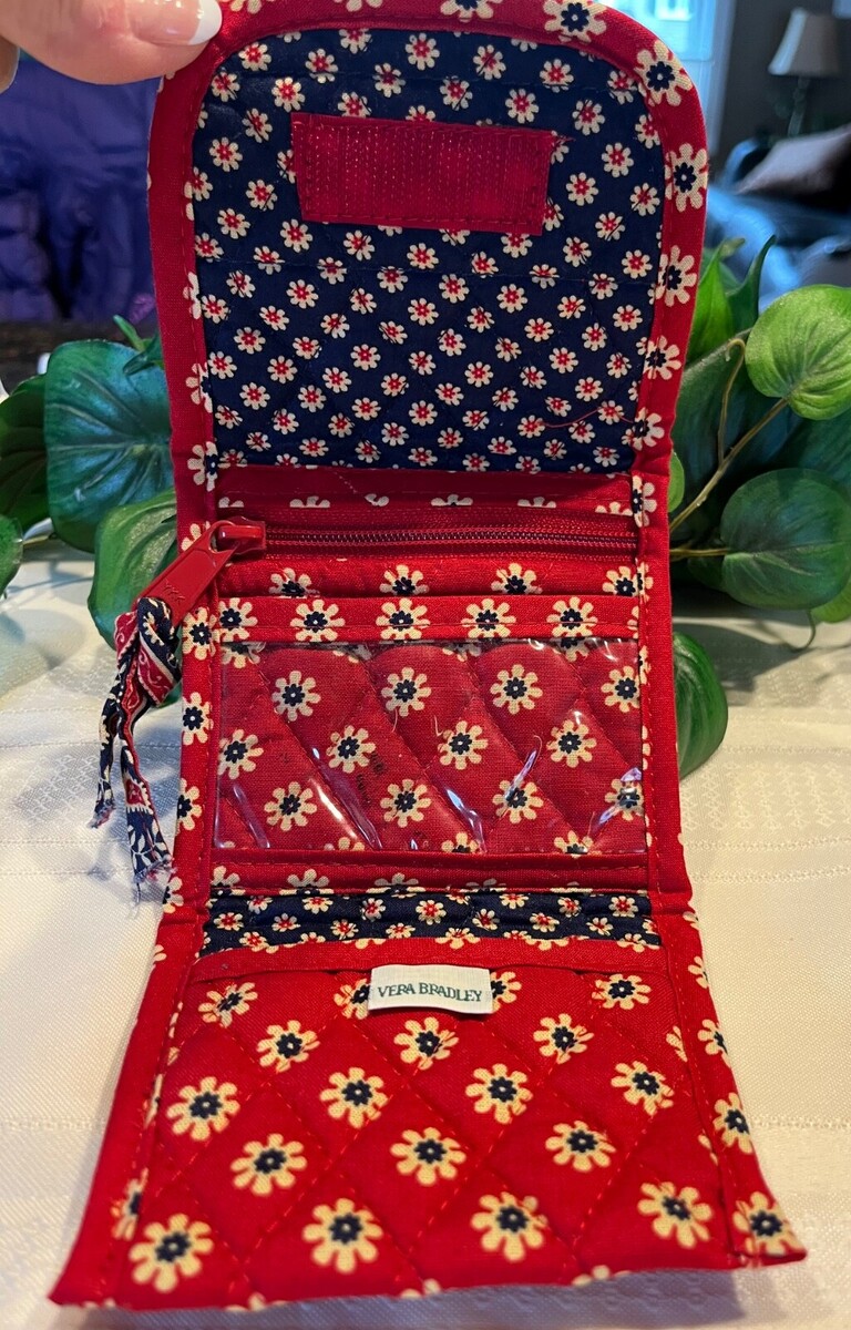 - Vera Bradley Vintage Pocket Wallet Americana with ID Pocket Zippered Coin Red