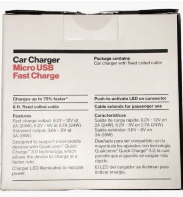- Verizon Micro USB Car Charger with Quick Charge - 24W