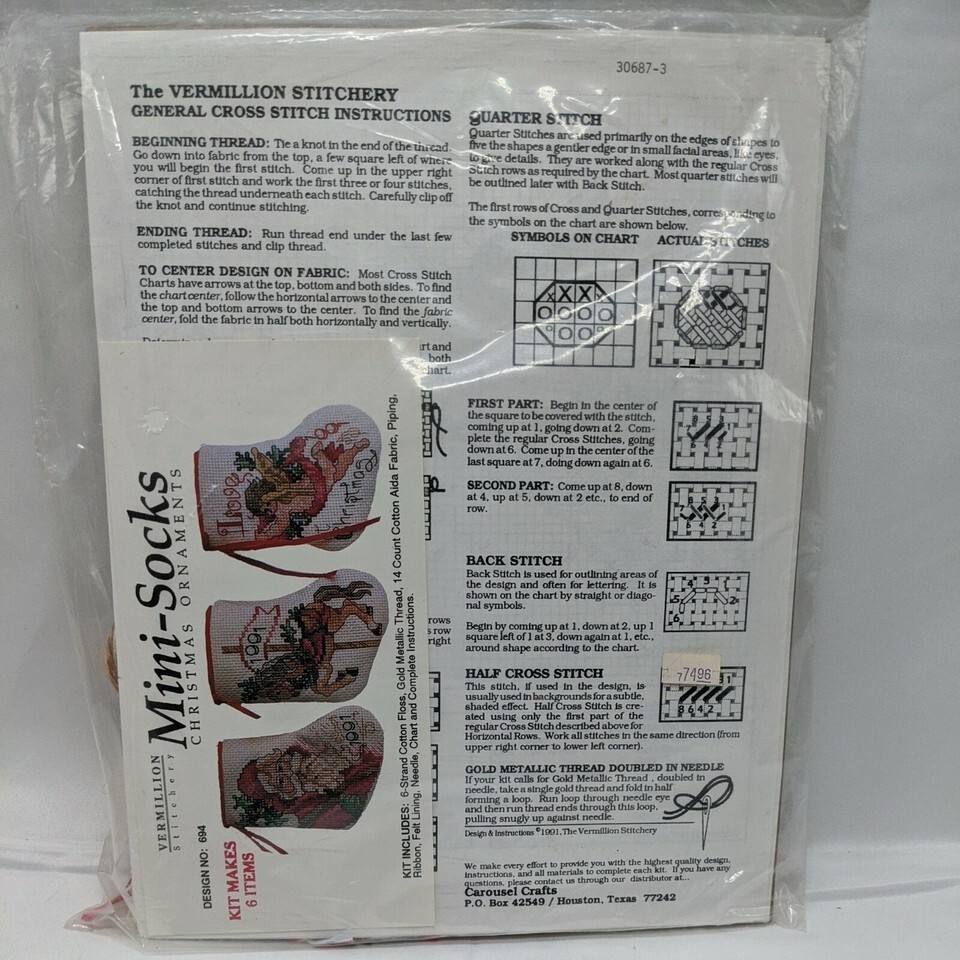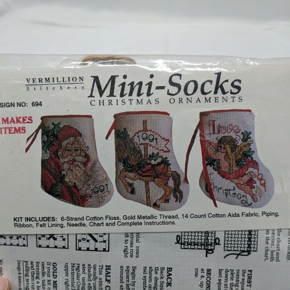 - Vermillion Stitchery Mini-Socks Christmas Ornaments Counted Cross Stitch Makes 6