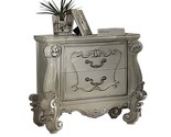 The Versailles nightstand is the perfect accent to create the style of royalty your bedroom has been needing. This nightstand crafted in wood with bone white finish was inspired by old European design with brown copper metal hardware and intricate wood carvings on the front of the two drawers.