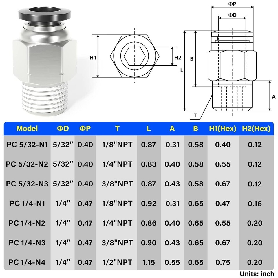 Size: 1/4" Tube OD x 1/8" NPT Thread (Note: NPT Thread Size is a Nominal Pipe Size, and it does not represent the actual diameter)