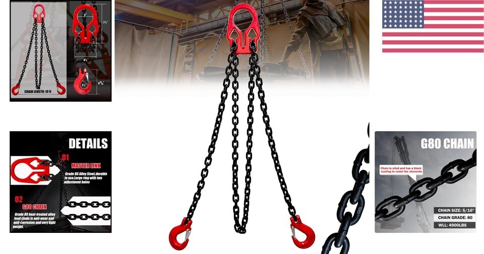 This adjustable chain sling is perfect for a wide array of applications, from construction to warehouse operations, making it an indispensable tool for professionals and DIY enthusiasts alike. Built to endure and regularly meet overhead lifting safety standards, you'll ensure every project is executed without compromise. Elevate your lifting experience with a chain sling that stands for quality?order your Versatile 10FT Chain Sling today!