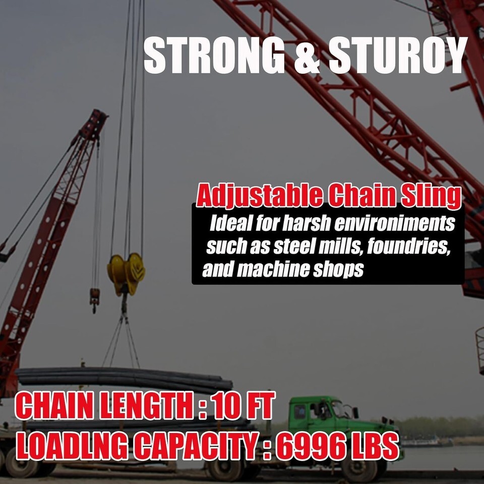 - Versatile 10FT Chain Sling - Adjustable, 3.18 Ton Capacity & Double Leg Design