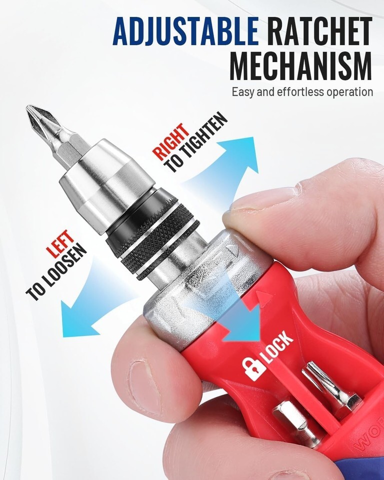 Don?t settle for ordinary tools; elevate your toolkit with the 12-in-1 Stubby Ratcheting Screwdriver. Order now and experience the difference in quality and convenience!