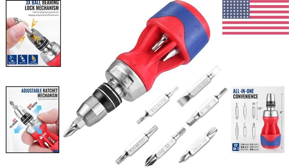 - Versatile 12-in-1 Stubby Ratcheting Screwdriver - S2 Steel Efficiency