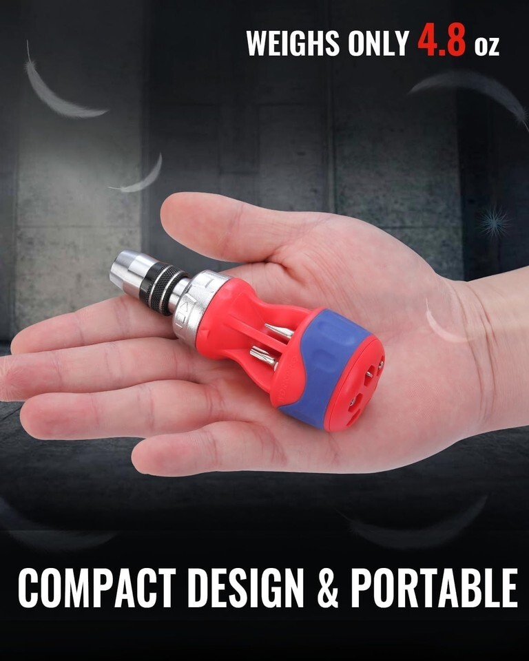 Compact Ultra-Light: Weighing in at just 4.8oz, this stubby screwdriver easily fits in your pocket, making it the ideal companion for on-the-go tasks.