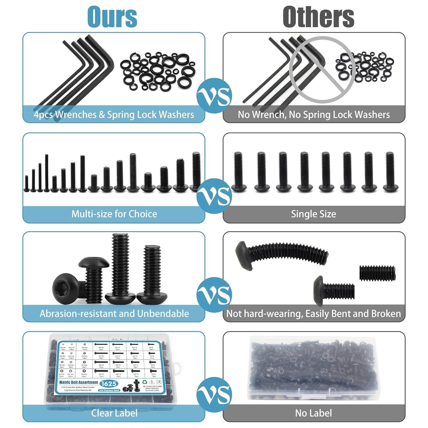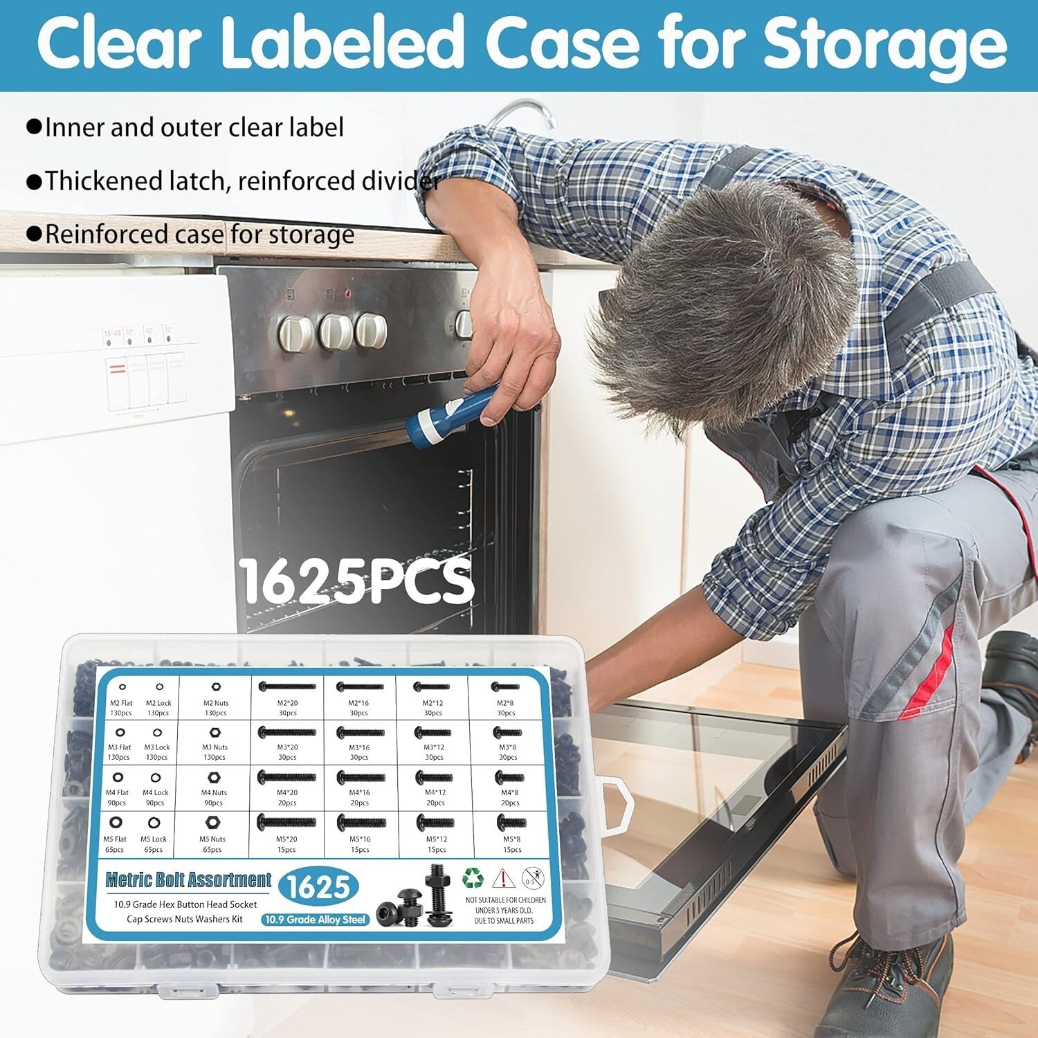 - Versatile 1625-Piece Metric Screw Set -Ideal for 3D Printers, Computers & More