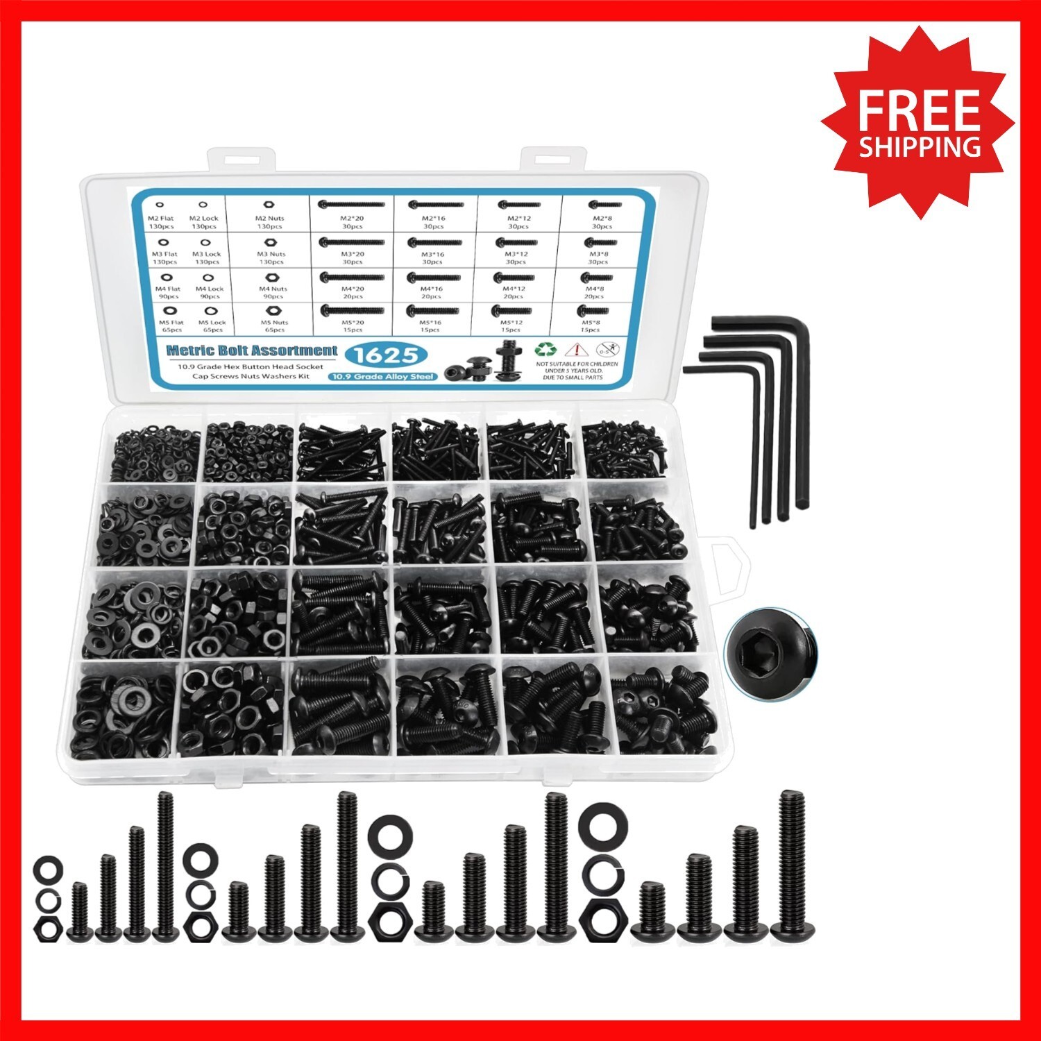 Discover our high-quality 10.9-grade alloy steel bolt and nut assortment, designed for durability and superior performance. Featuring clear threads, even force distribution, and excellent rust and oxidation resistance, this set ensures reliable fastening in various projects. It includes 1,625 pieces of standardized metric sizes (M2, M3, M4, M5), with a variety of Allen screws, nuts, and flat spring lock washers. The set also comes with four different lengths of button socket head screws (8mm, 12mm, 16mm, 20mm) and is complemented by four Allen wrenches for easy installation. Organized in a reinforced storage box with thick dividers, labels, and a secure latch, this kit offers convenient access and storage. Perfect for applications in 3D printers, electronics, household appliances, lamps, cabinets, and bicycle repairs. We provide a 24- to ensure your satisfaction. To ensure fast and reliable delivery, we work with multiple fulfillment partners and suppliers. Depending on availability and location, your order may ship from different warehouses or arrive in packaging that varies from item to item. Tracking details are typically provided shortly after shipment, and customer satisfaction remains our top priority. Please note that due to carrier policies and regional regulations, certain items may not be eligible for delivery to specific states or territories.