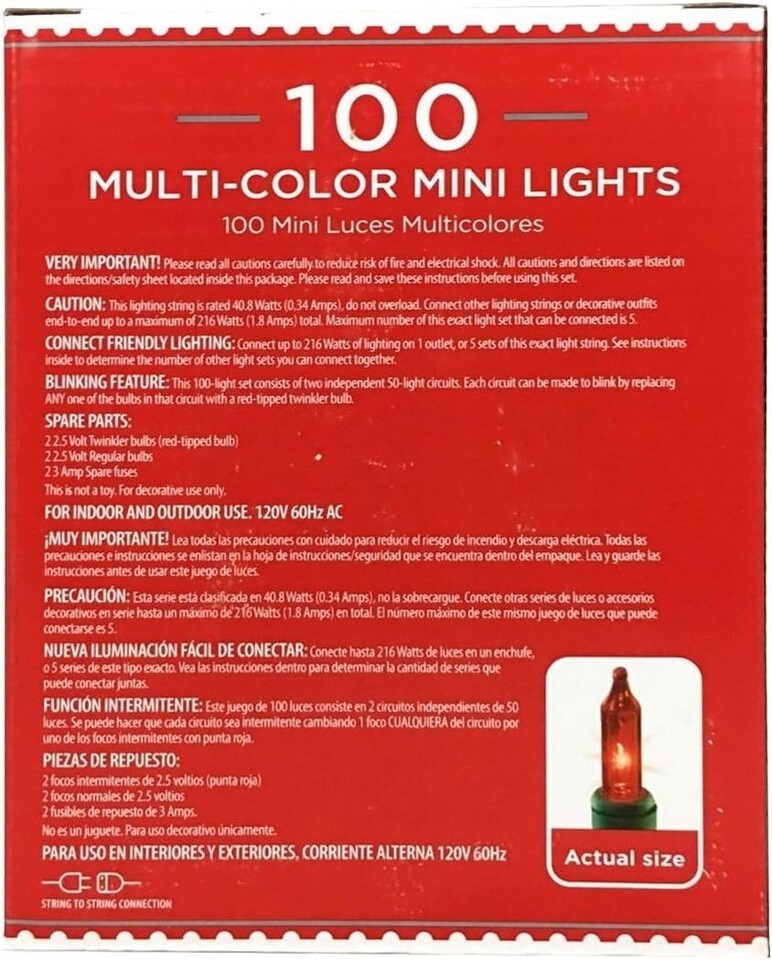 Transform your holiday celebrations with the enchanting glow of our Indoor and Outdoor Multi-color Mini Christmas Lights. Each set features two strands, each containing 150 incandescent lights that promise to illuminate your festive displays night after night.