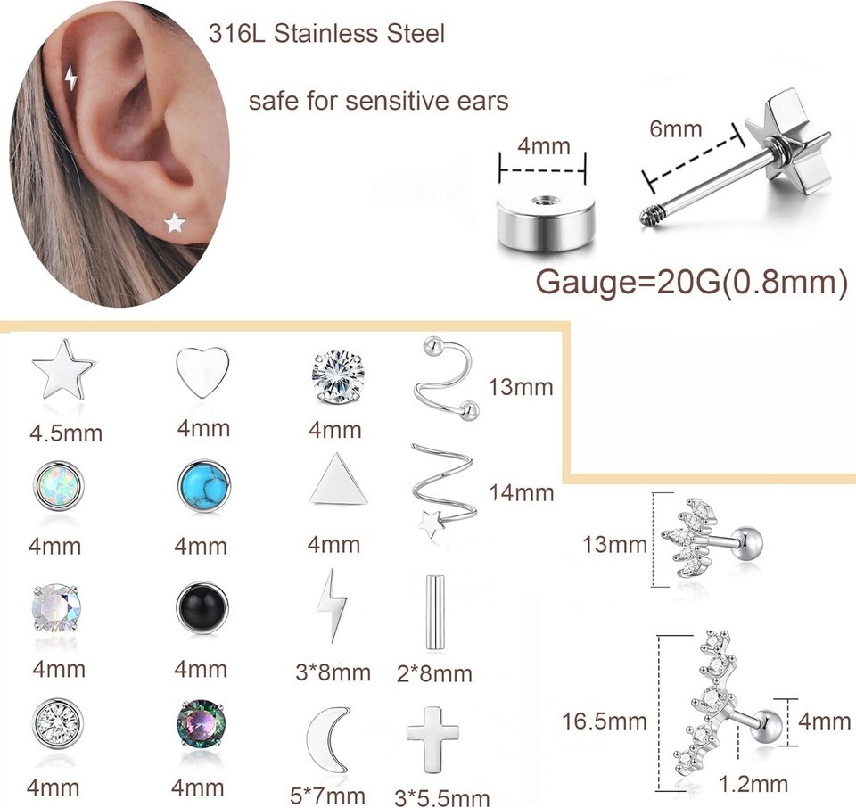 Versatile 20G Stainless Steel Flat Back Earrings Set for Multiple Piercings ? ? ? ? ? ? ? ? ? ? ? ? ? ? ? ? ? ? Versatile 20G Stainless Steel Flat Back Earrings Set Unveil your individuality and showcase your unique style with our exquisite earrings set, designed for both women and men. This diverse collection includes 14 pairs of stunning stainless steel earrings, perfect for multiple piercings and versatile enough to elevate any outfit. Features: Comprises 14 pairs of earrings: 3 pairs of cartilage earring hoops, 2 pcs twisted ball and star earrings, and 2 pcs cubic zirconia (CZ) inlaid cartilage earrings. Made of 316L stainless steel: Hypoallergenic, surgical-grade material that ensures comfort and safety for all skin types. High electroplating process: Guarantees lasting color retention, preventing discoloration and allergic reactions. Delicate appearance: Shiny cubic zirconia adds a touch of elegance to your look. Specifications: Gauge: 20G (0.8mm) pin thickness Post length: 6mm Flatback size: 4mm Cartilage earrings hoops inner diameter: 8mm/10mm/12mm Perfect for Every Occasion: Elegantly packaged in an exquisite box, these earrings make a thoughtful gift for any special occasion?be it anniversaries, Valentine?s Day, Christmas, or birthdays. Whether you?re looking to treat yourself or surprise a loved one, our earrings are versatile accessories that make a statement. Why Choose Our Earrings Set? This meticulously curated collection is not just about style; it's about the experience of quality craftsmanship where every piece meets your diverse needs for cartilage, helix, tragus, or daith piercings. Additionally, the flatback design allows for comfortable wear even while sleeping, ensuring that your elegance never has to pause. Your satisfaction is our utmost priority. If you encounter any issues or have questions about the product, our dedicated team is ready to provide a perfect solution immediately. Embrace the beauty of self-expression with our Versatile 20G Stainless Steel Flat Back Earrings Set today! Shipping Free Fast Shipping - We offer free shipping to most of the USA with a normal delivery time of 3-7 days. However, due to the current situation, additional delivery time (up to 3 weeks) may be required for some items. Alternative Carriers - We may use alternative carriers (e.g. USPS, FedEx, UPS, etc.) to ensure your package arrives safely and on time. Due to the use of multiple carriers, we are unable to provide a tracking number automatically. Handling Time - Orders are processed and shipped within 1-2 business days of receiving cleared payment. Shipping Restrictions - Shipping to Alaska, Hawaii, Puerto Rico, Guam, and other US territories may incur shipping charges or delivery restrictions. Please contact us before ordering, or your order can be refunded/cancelled. State Restrictions - There may be restrictions based on your state of purchase. For example, certain items may not be shipped to California due to state regulations. Contact for Tracking Updates - If you require tracking updates or have any concerns about the delivery of your order, please feel free to contact us, and we will be happy to assist you. Return 30-Day Hassle-Free Returns - We want you to be completely satisfied with your purchase. If you are not, you can return the item within 30 days of receiving it for a full refund or exchange. Easy Return Process - To start a return, simply contact us and we will provide you with a prepaid return shipping label and detailed instructions. Restocking Fee - There are no restocking fees for returns. However, the buyer is responsible for return shipping costs if the return is not due to a seller's error. Refund Processing Time - Refunds will be processed within 5 business days of receiving the returned item in its original condition. Payment We accept all major credit cards, PayPal, and Apple Pay for your convenience. Your payment information is secure and encrypted to ensure a safe and seamless transaction. Please complete your payment within 3 days of purchase to avoid any delays in shipping. Feedback Your feedback is extremely important to us. We strive to provide the best products and customer service possible. If you are satisfied with your purchase, please take a moment to leave us a positive review. If you have any concerns or issues with your order, please contact us before leaving negative feedback. We are committed to resolving any problems and ensuring your satisfaction. Contact Us If you have any questions or concerns, please feel free to reach out to our customer support team. You can contact us through the messaging system. We are available Monday to Friday, 9:00 am to 5:00 pm EST, and we will do our best to respond to your inquiry within 24 hours. Buy it now and enjoy a pleasant shopping experience! UPC: Not Set Metal Purity: 316L Stainless Steel Item Length: Stainless Steel Stud Earrings Unit Quantity: 20G Style: Hoop,Stud Theme: Stainless Steel Stud Earrings Material: Stainless Steel,Surgical Steel,316L Stainless Steel,Cubic Zirconia Ear Area: Cartilage,Daith,Helix,Lobe,Tragus Main Stone Treatment: Not Enhanced Secondary Stone: Cubic Zirconia Occasion: Anniversary,Birthday,Christmas,Valentine's Day,New Year,Party Features: Hypoallergenic,Color Retention,No Discoloration,Comfortable Brand: Unbranded Type: Earrings Color: Silver Main Stone Color: Colorless Closure: Flat Back Main Stone: Cubic Zirconia Shape: Round Metal: Stainless Steel Main Stone Creation: Not Set Main Stone Shape: Round Setting Style: Not Set Country of Origin: Not Set Cut Grade: Not Set Base Metal: Surgical Steel Number of Gemstones: 12 Country/Region of Manufacture: Not Set Item Diameter: 4 mm Main Stone Width: Not Set Main Stone Depth: Not Set Main Stone Length: Not Set Seller Warranty: No Era: Undated Gemstone Clarity Grade: Eye Clean MPN: Not Set Unit Type: Unit Antique: Not Set Vintage: Not Set Handmade: Not Set Wholesale: Not Set Signed: Not Set Personalize: Not Set Customized: