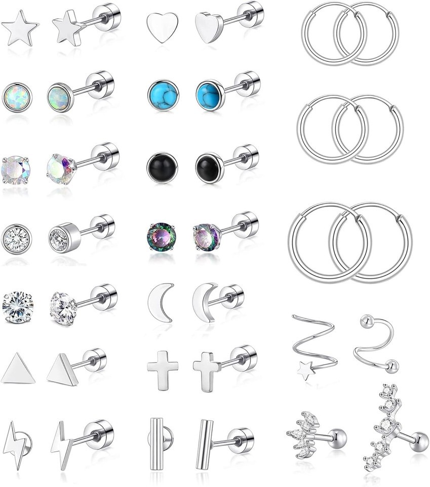 Versatile 20G Stainless Steel Flat Back Earrings Set for Multiple Piercings
