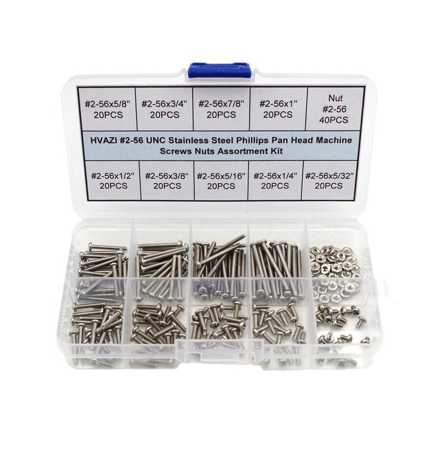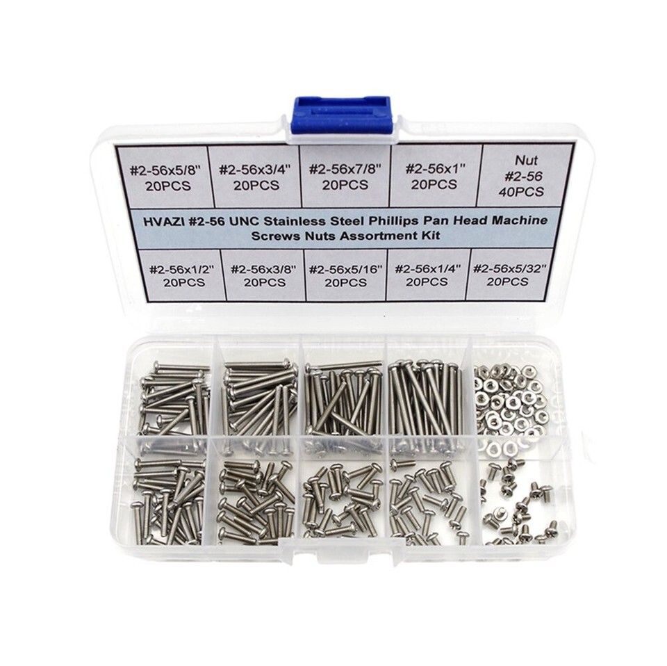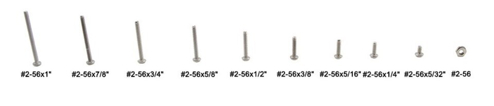 Includes various lengths: #2-56x5/32", #2-56x1/4", #2-56x5/16", #2-56x3/8", #2-56x1/2", #2-56x5/8", #2-56x3/4", #2-56x7/8", and #2-56x1" (Each length has 20 pieces).