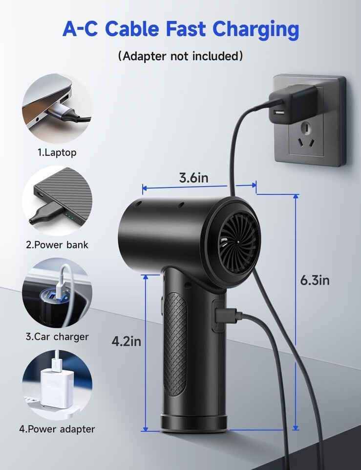 Rechargeable Battery Fast Charging: Boasting a powerful 6000mAh built-in battery, enjoy continuous operation for 20 to 30 minutes. Comes with a USB-C fast charging cable, reaching full charge in just 3 to 4 hours.