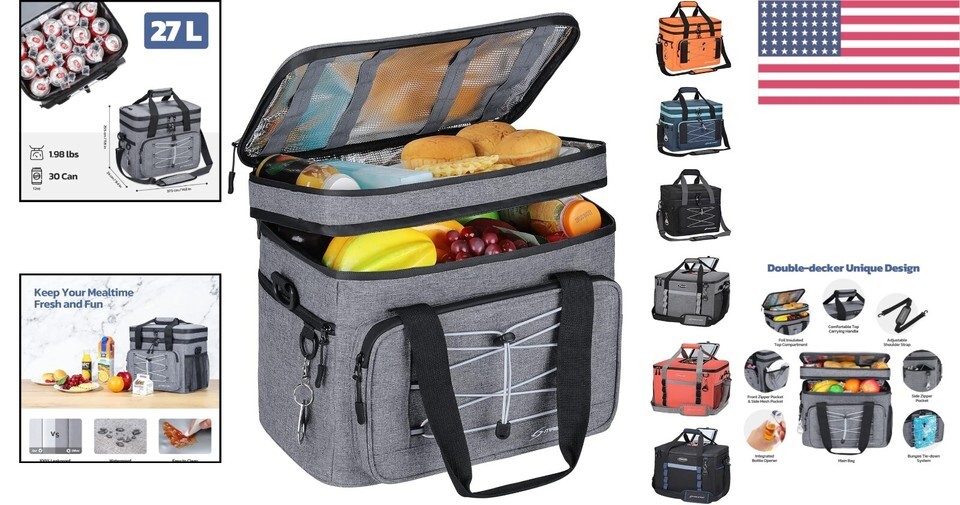 - Versatile 30 Can Soft Cooler - Waterproof, Insulated Beach and Grocery Bag