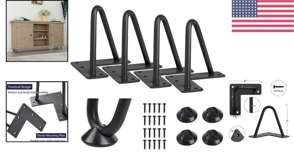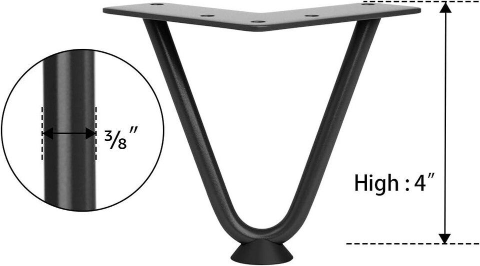 - Versatile 4-Inch Steel Hairpin Legs for Custom Furniture - Supports 300 lbs