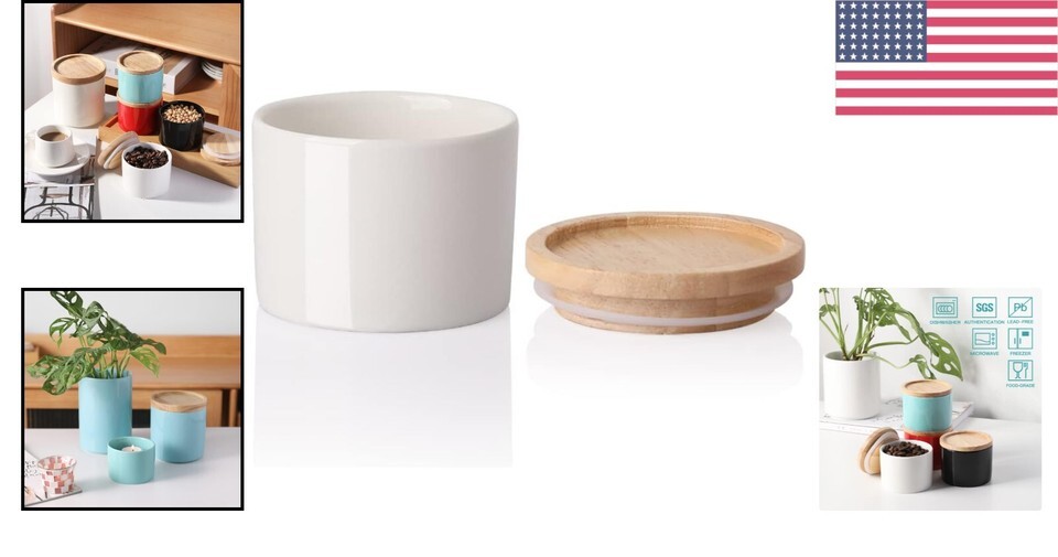 Discover the charm and efficiency of our 5 Oz Ceramic Kitchen Canister, thoughtfully designed to keep your favorite ingredients fresh while adding a touch of elegance to your kitchen decor. Crafted from smooth, food-grade porcelain, this canister features an airtight wooden lid that seals in freshness and protects against light exposure?far superior to traditional glass or metal storage solutions.