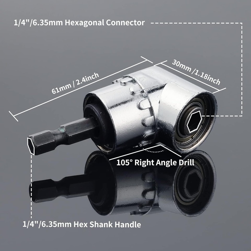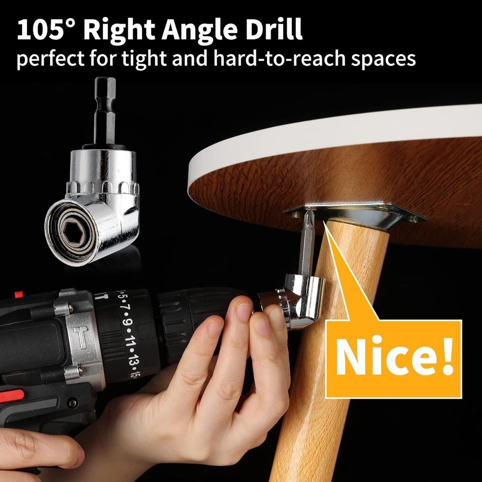 Great for Tight Spaces: The reliable 105-degree right angle drill adapter works seamlessly with electric drills and manual wrenches, ideal for achieving work in tight spaces.