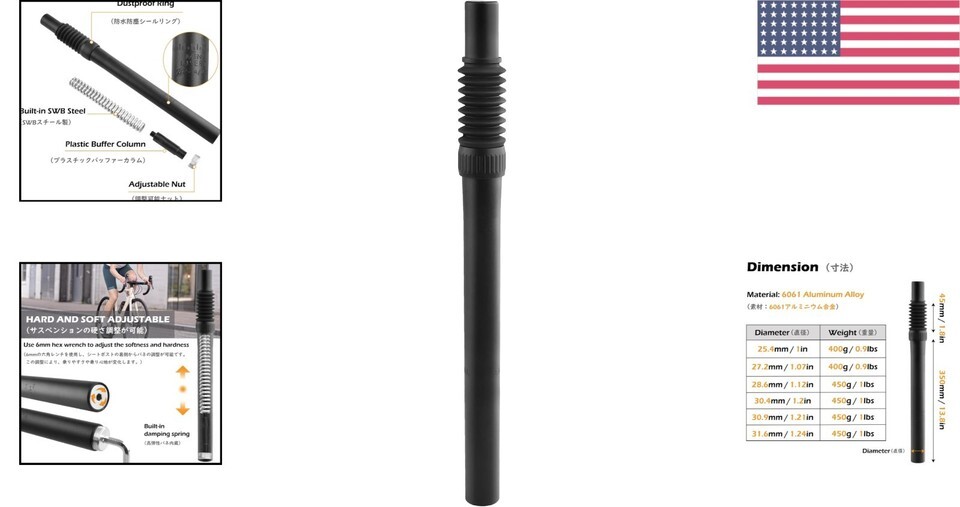 - Versatile Bike Seat Post 25.4mm-31.6mm: Cushioned, Easy Install, 350mm Length