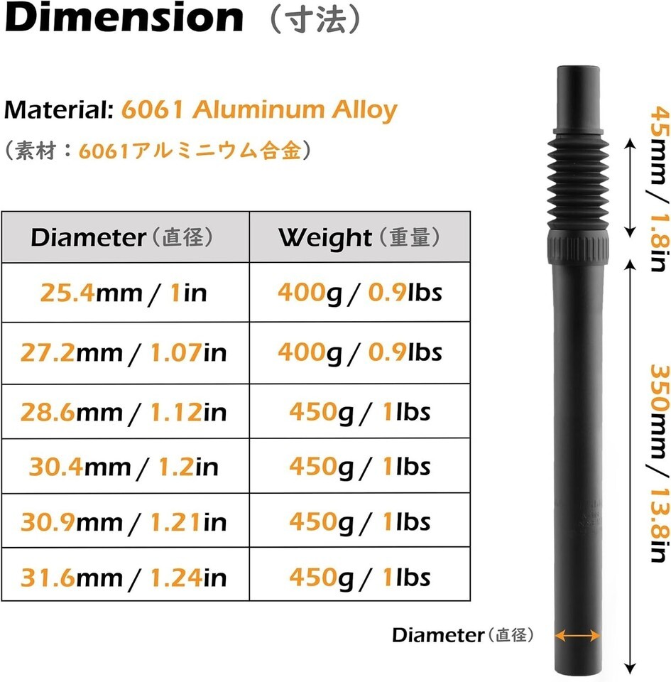 Diameter: 25.4mm/27.2mm/28.6mm/30.4mm/30.9mm/31.6mm