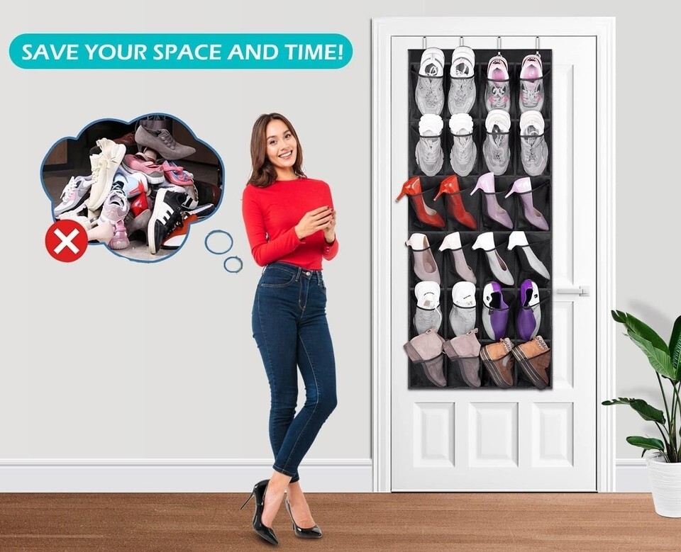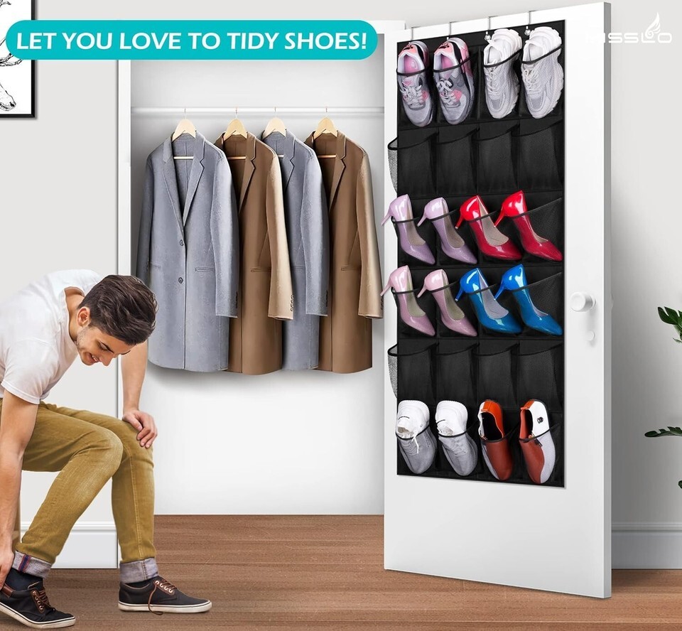 - Versatile Hanging Shoe Organizer - 24 Pockets for Men’s and Women’s Shoes