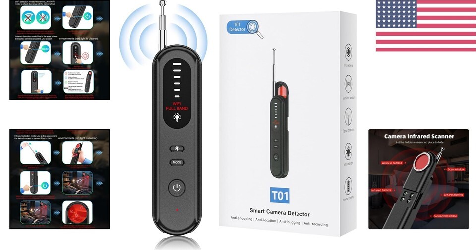 Features: Rechargeable,RF Signal Detection,Camera Lens Finder,Magnetic Field Detection,Flashlight,Privacy Protection,Passive Detection,Infrared Scanning,Eavesdropping Detection,GPS Tracker Detection,User-friendly Interface
