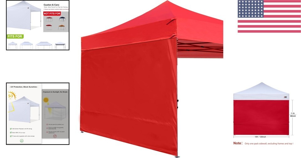 - Versatile Red Waterproof Canopy Sidewall - Fits 10x10 & 10x20 Pop-Up Tents