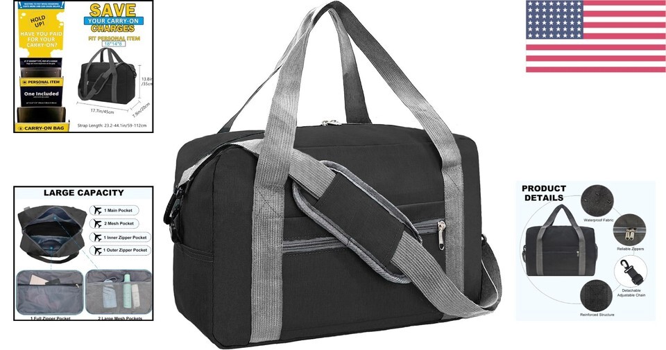 Perfect Size: Available in two sizes - 18 x 14 x 8 in (30L capacity) and 16 x 10 x 8 in (20L capacity). Designed to fit conveniently under your seat, this bag helps you avoid excess baggage fees while adhering to airline regulations.