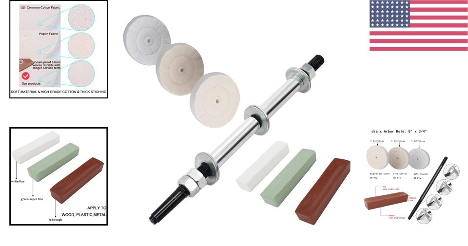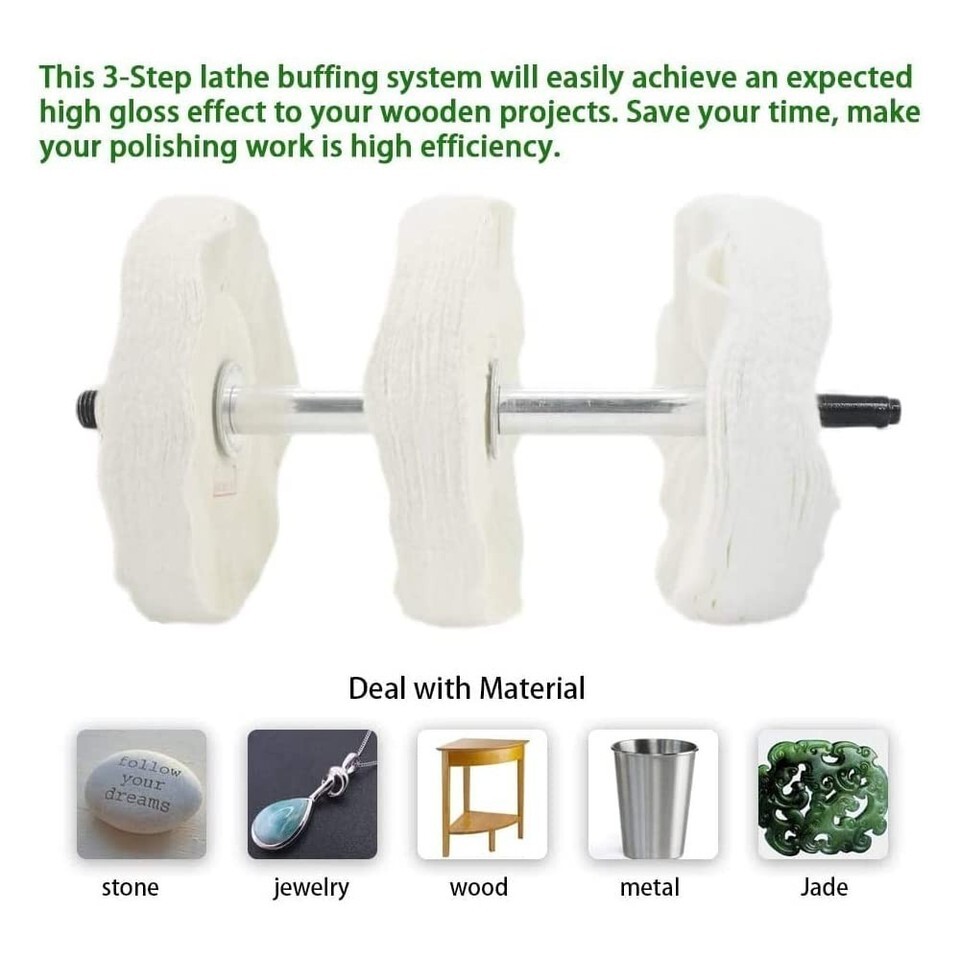- Versatile Woodworking Lathe Buffing System: 16" Mandrel with 3 Polishing Wheels