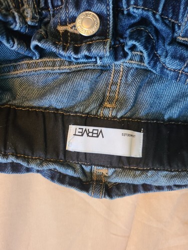 Gently worn denim skirt, 100% cotton. No stretch but does have some give in the elastic waistband