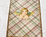 Very OLD Tiny Tartan Plaid with Cherub and Gold Edge Gift Box 2 1/2 1 7/8