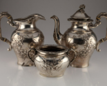 Verzierte Sterlingsilber Britische Tee / Kaffee Satz 1930s Hand-Chased
