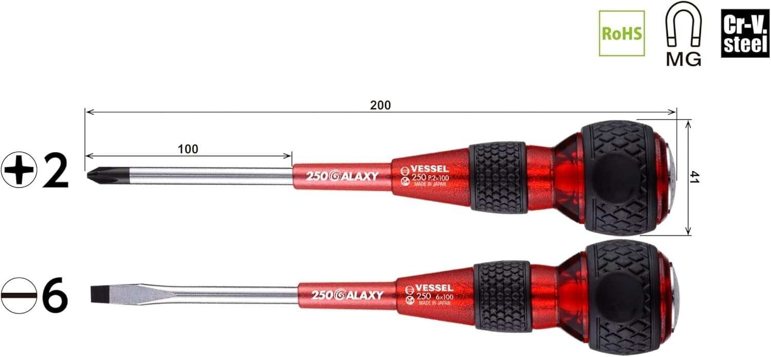- Vessel Ball Grip Driver Galaxy Red Set of 2 +2x100/-6x100 250-2PS-GPU