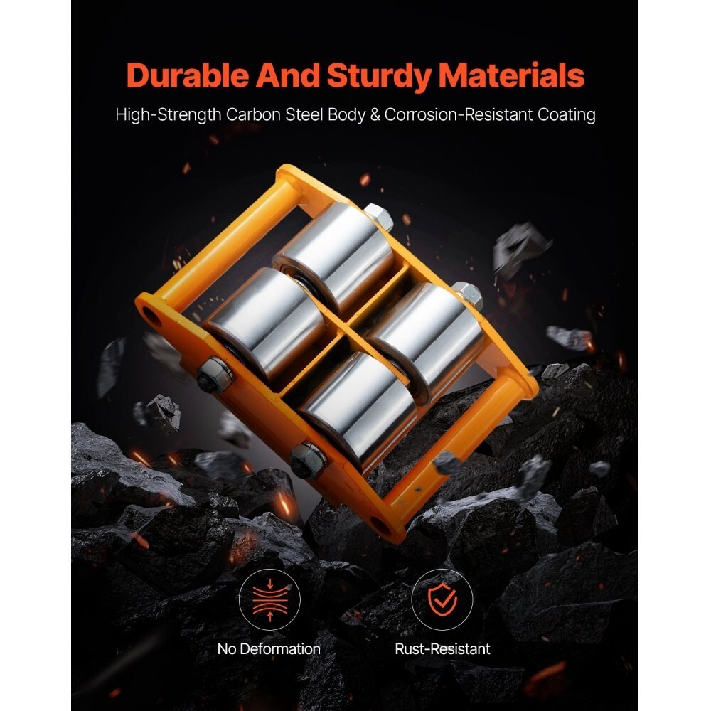 26455LBS/12T Stunning Loading: VEVOR heavy duty machinery skate dolly can effortless load and transport 26455LBS/12T heavy industrial loads, such as machines, industrial equipment, oversized cartons and more. Reinforced with secure bolts, the entire structure is more robust to ensure safe and stable transportation of goods. Take loads off your shoulder and reduce manual labor costs during the handling process.