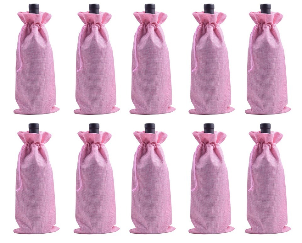 - Viamto 10pcs Pink Burlap Wine Bags Drawstring Lining 15x35cm Gift Pouches
